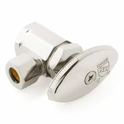 Outlet 💯 Signature Hardware 1/2 x 3/8 in. IPS x OD Tube Knob Angle Supply Stop Valve in Polished Nickel ✨