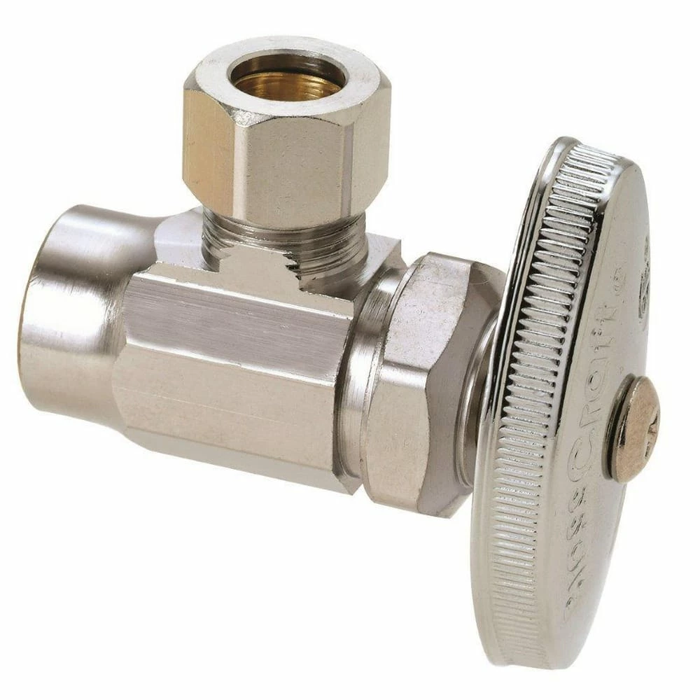 Outlet ๐ PROFLOยฎ 5/8 x 3/8 in. Compression Knob Angle Supply Stop Valve in Chrome Plated ๐